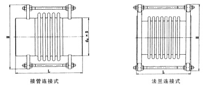 波紋 補(bǔ)償器由一個(gè)波紋管和兩個(gè)端接管構(gòu)成,端接管或直接與管道焊接,或焊上法蘭再與管道法蘭連接。補(bǔ)償器上的拉桿主要是運(yùn)輸過程中的剛性支承或作為產(chǎn)品予變形調(diào)整用,它不是承力件。該類補(bǔ)償器結(jié)構(gòu)簡(jiǎn)單,價(jià)格低,因而優(yōu)先選用。